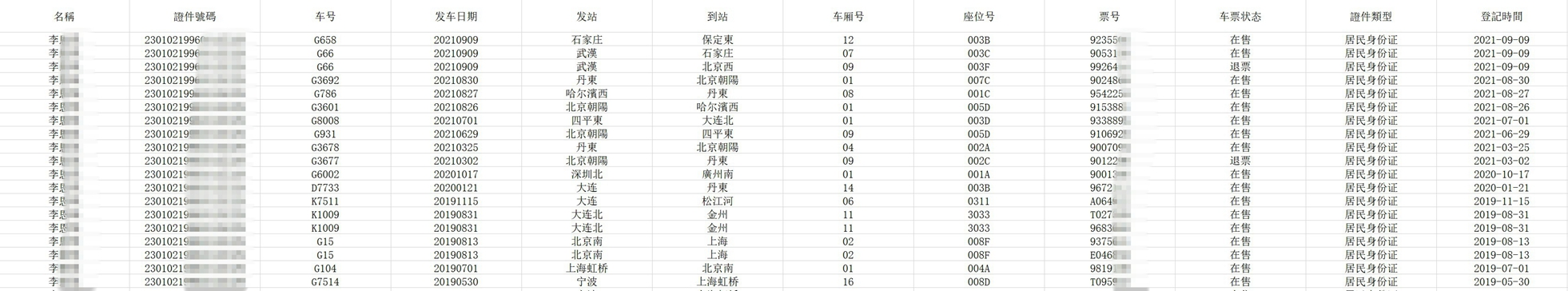 查询飞机、动车行程记录